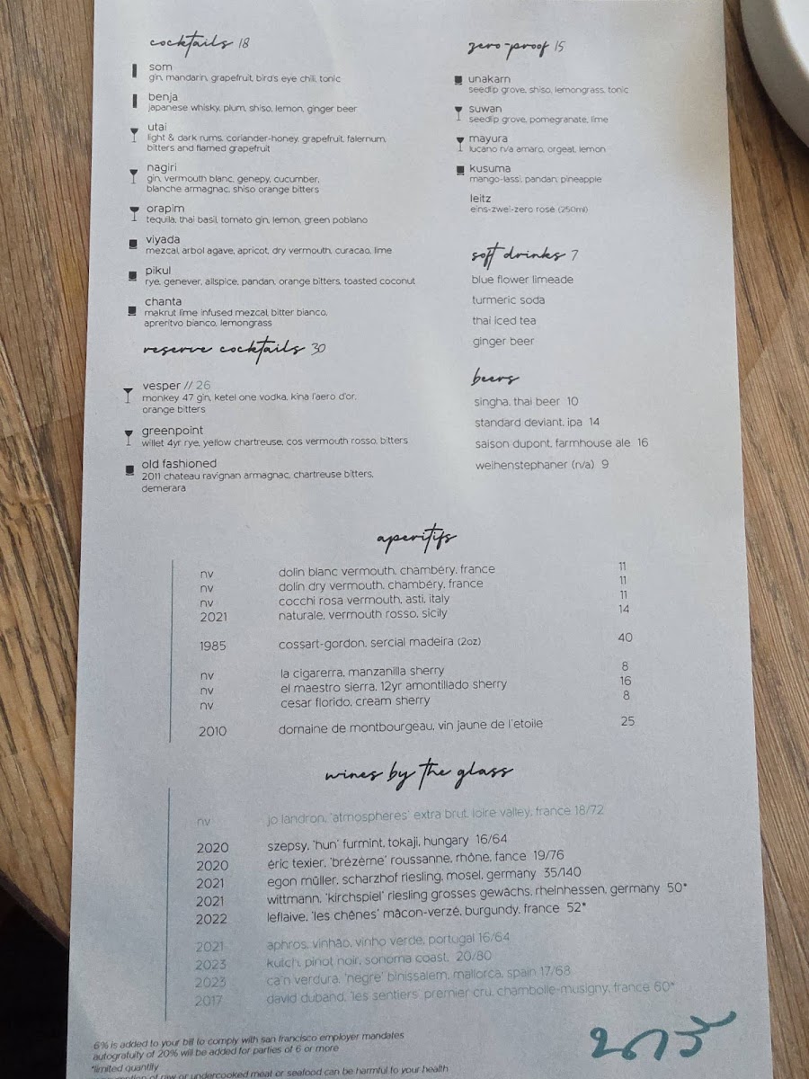 Guests can explore standout items like the delicate kaluga caviar served with scallion roti, or the lively yum sumo winter citrus salad with fresh herbs and peanuts, perfect for a refreshing start. For main courses, dishes such as the caramelized fish sauce cabbage and priking gai chicken bring layers of earthy, spicy notes that pair well with the restaurant’s warm and contemporary atmosphere.